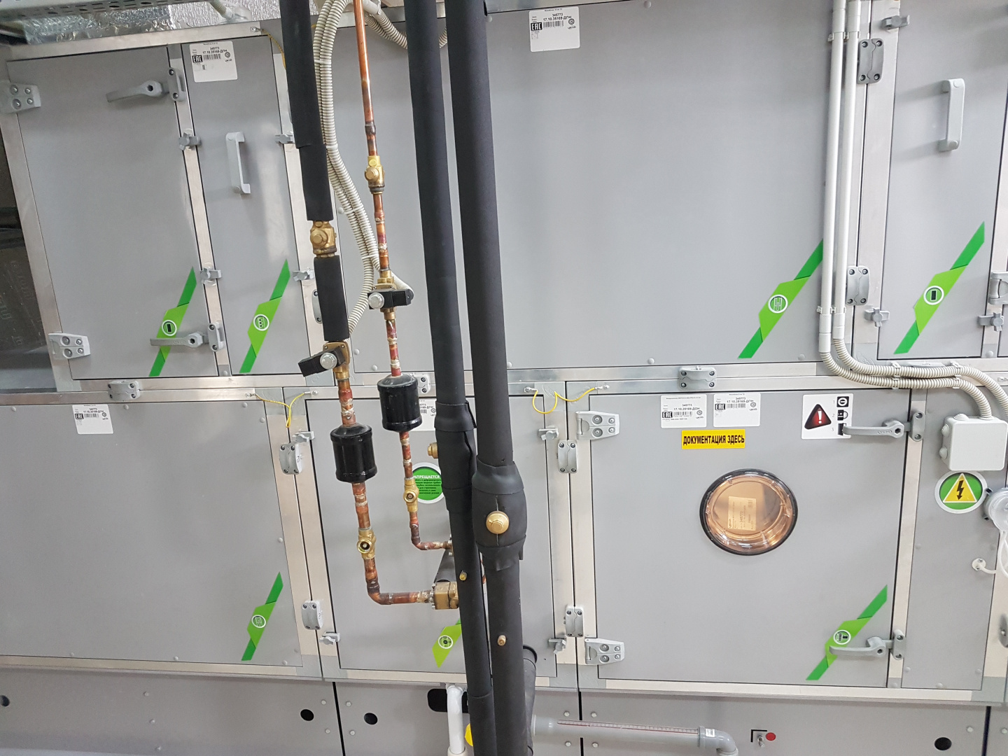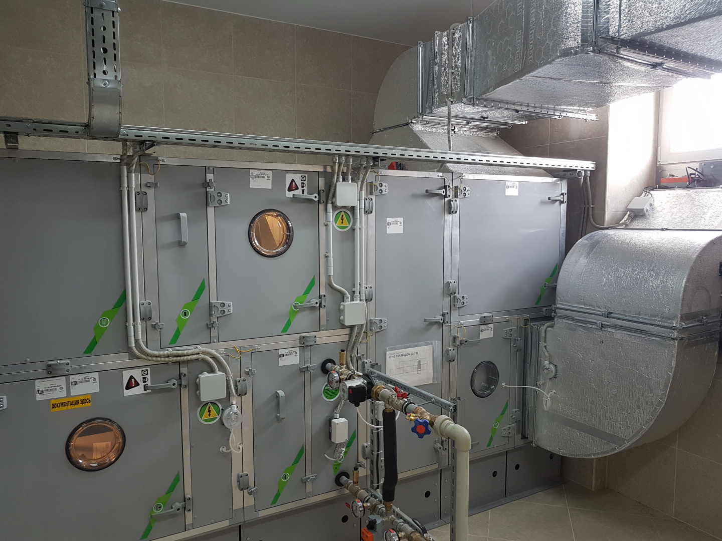 Приточно-вытяжная вентиляционная установка на 6000 м.куб/час. Для подготовки воздуха системы кондиционирования офисного здания.